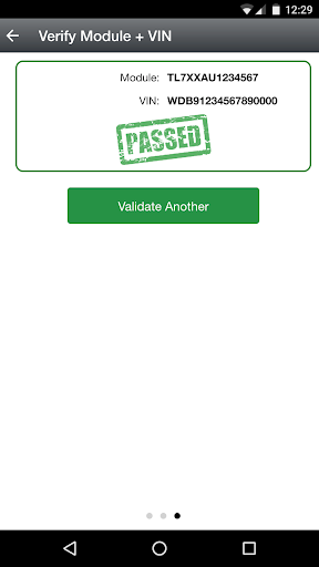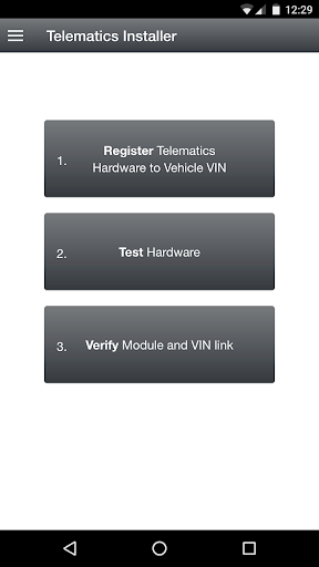 The App allows you to register your vehicle against a telematics module, perform a telematics module test, and check correct linking between vehicle and module.