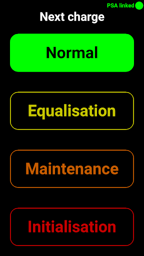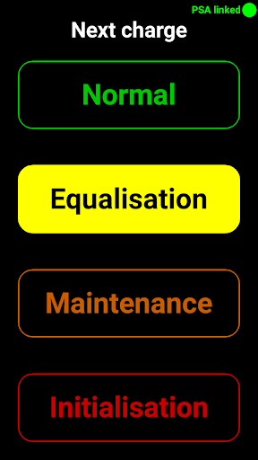 – Change the charge type (Normal, Equalisation, Maintenance, Initialisation)