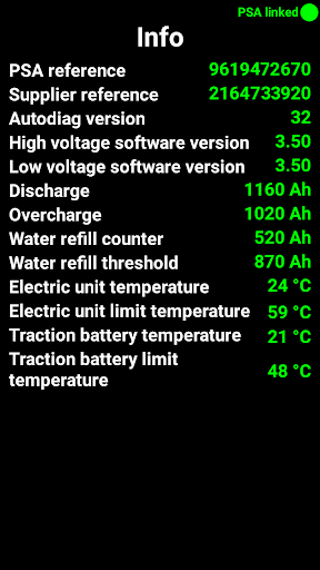 It is necessary to connect an OBD (ELM327) interface to the 16-pin OBD plug of the vehicle. If the vehicle is equipped with a 30-pin PSA plug, a PSA/OBD adapter will be necessary.