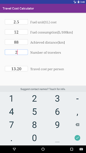 Travel Cost Calculator for car trips and counting costs. Basic fuel cost calculator per person.