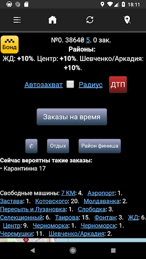 Приложение для водителей Такси Бонд. С его помощью можно получать и выполнять заказы, смотреть состояние счета и историю поездок, обращаться к руководству.