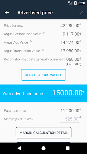 o	Access all the Argus values (Argus Personalised Value®, Argus Ads Value®, BtoB and BtoC Argus Transaction Value®, Argus Turnover Time®, Expected reconditioning costs).