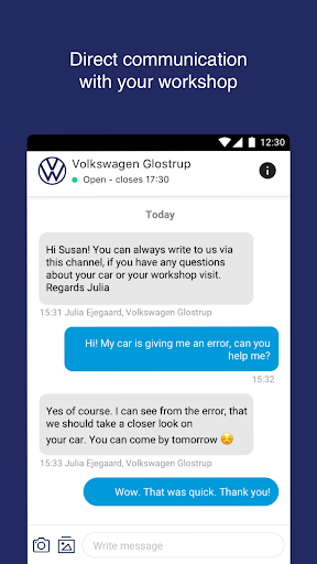 MinVolkswagen keeps you updated about your car’s health at all time. By giving you an overview of your car’s vital parts you don’t have to concentrate on the technical aspects of your car, but instead enjoy life on the road while knowing that if anything happens with your car MinVolkswagen will keep you updated and on top of the situation