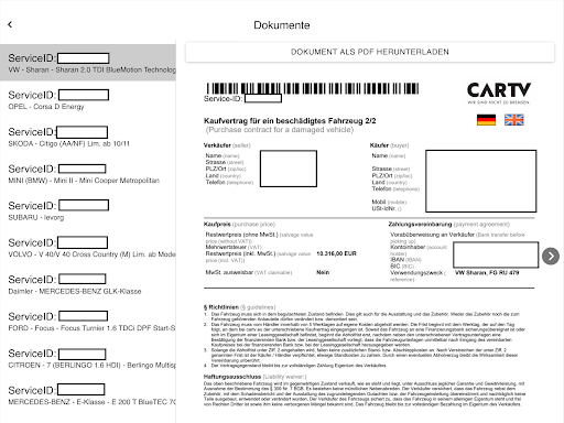 At CARTV you will find a large selection of accident vehicles at fair prices. Our service team will support you during the start-up phase and later with the purchase process. A first class basis for good business!