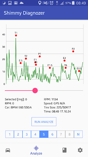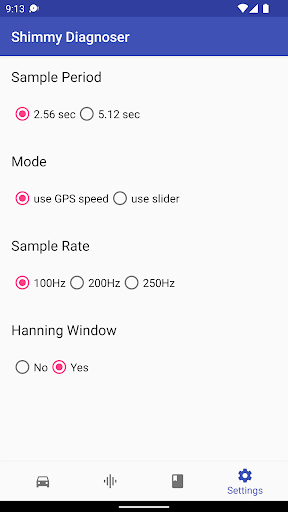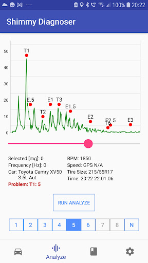 Shimmy Diagnoser is a powerful app that replaces a conventional Vibration meter. It can detect even the slightest of vibration and not only present the frequency in a graph, but also tell what part of your vehicle that has a problem.