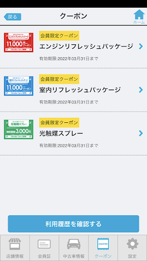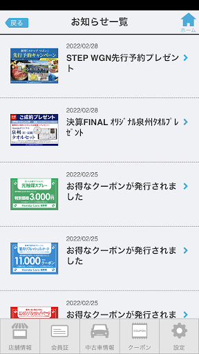 週末イベントやお得なクーポン、店舗への連絡やもしものときのロードサービス等もスマートフォンではこれ一つでOK。