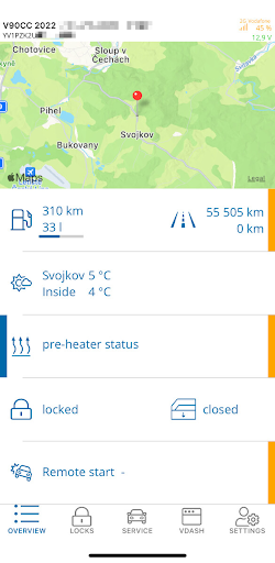 Application for remote controling Volvo cars. Service monitoring, remote controled additional functions (like starting fuel heater, air condition, ..). Remote assistance in case there’s something wrong with the car or collision, log book and many other functions. Works in the whole Europe! You can purchase VDD hardware at http://www.D5T5.com