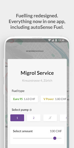 Connect to your car via the autoSense app: The app supports you with a variety of functions, valuable information and partner services. Moreover, car data is always included and shown in the app. autoSense works in Switzerland as well as in all countries of the EU / Western Europe.