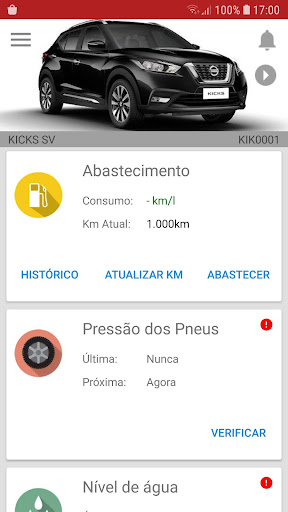 Lembretes para verificação do nível de óleo, água e calibragem dos pneus