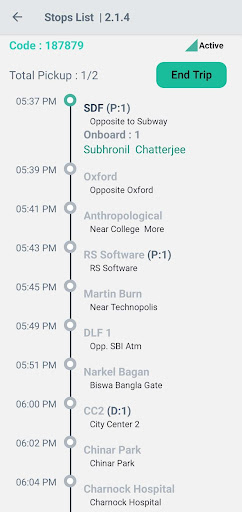 4. Tracking themselves and the stops, through a route assigned to them on a map,