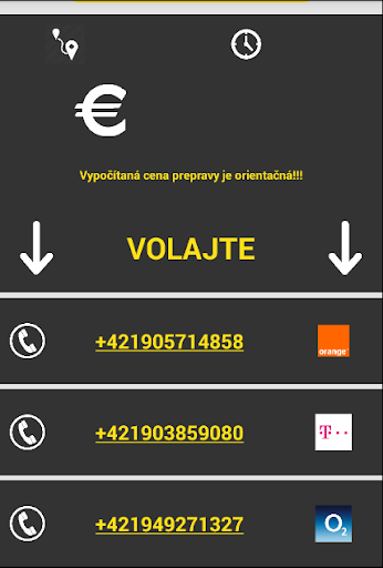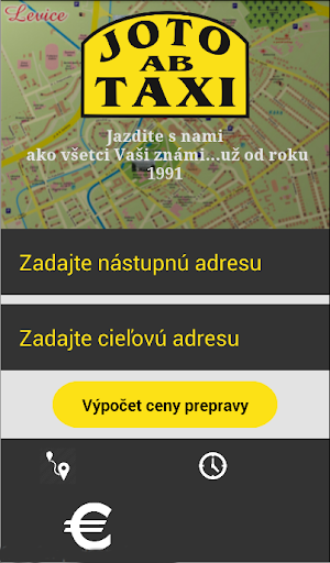 Jazdite s nami ako všetci Vaši znami…od roku 1991. Chcete vedieť koľko Vás bude stáť preprava? Stiahnite si našu app, zadajte nástupnu a cieľovú adresu a za okamih viete sumu prepravy. Následne kliknite na jedno z telefónnych čísiel a zavolajte si taxík priamo z app.