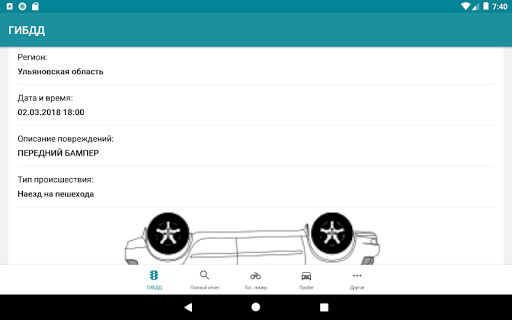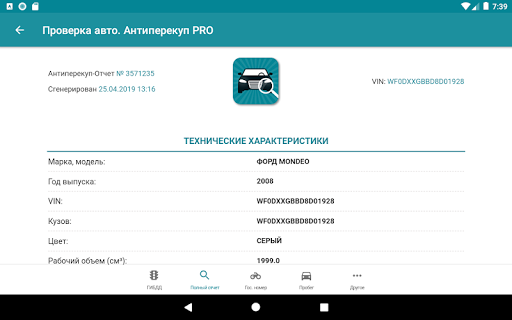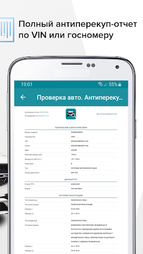 Кроме данных проверок в приложении есть возможность заказать техосмотр, оформить полис ОСАГО или КАСКО, заказать срочный выкуп вашего авто, заказать помощь в подборе авто (при поддержке перекуп-клуба). Наши партнеры, компания Росподбор, проведут проверку двигателя, просканируют авто с помощью OBD / ОБД сканера. Проверят состояние кузова при помощи толщиномера. У них можно вызвать автоэксперта на день.