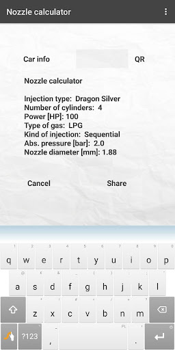 The program allows you to calculate the diameter of the LPG/CNG installation nozzles based on the parameters: