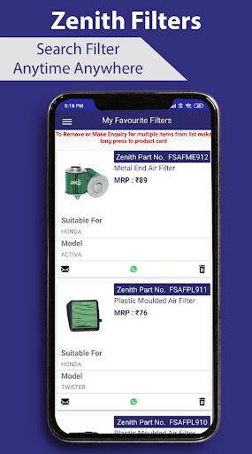 ZENITH products and has an extremely helpful intuitive catalog across a wide range of filters and related products across passenger cars, two & three-wheeler, commercial vehicles and Catering application in multifarious segments like Automobiles, Agriculture, Industrial, Small Engines, Earth moving, Marine, Air Conditioning, Industrial Heating, Petrochemical, Tractors.