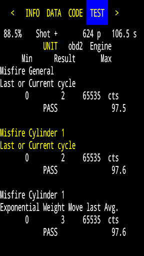 For all obd-2 vehicles real time bar, scope and line plots. Digital and analog auto or manual 10x power scale gauges with sound and alarms, Rolling averages, min. max. histogram probability statistics. Elapsed times all items 2 channel with any start, stop value, min. max and avg. records. Individual real time data acquisition rate settings, up to 50Hz. 159 unit conversions. Fuel rate, economy and distance data. Inspection and emission monitor test results.