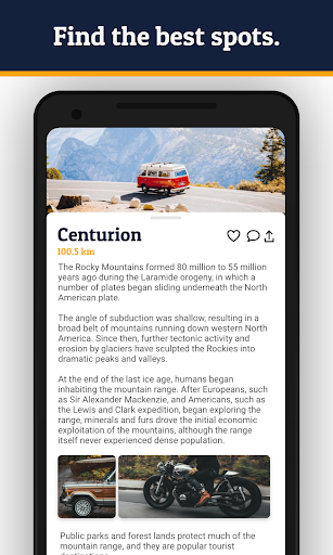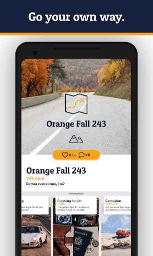 While we like organised roadtrips and look forward to partner with the best organisers, we want to offer more freedom. We want to give you the option to embark on an amazing roadtrip, without any preparation. If you find a couple of hours during a day, all you need to do is select a roadtrip from our app. Leave whenever you want. Drive however you want. Stop wherever you want. Without restrictions.