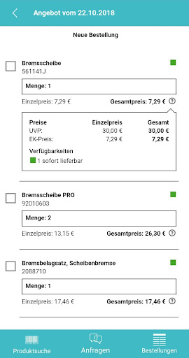 Behalten Sie zudem stehts den Überblick über aktuelle oder vergangene Bestellungen bei Ihrem Teilgroßhändler.