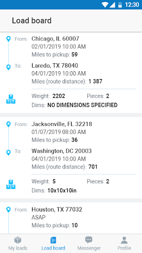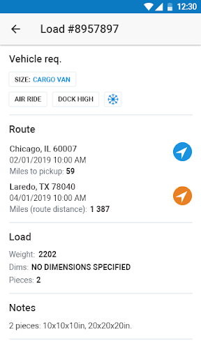 • View load details including, load dates/times, weight, miles, load age, load comments and many other details.