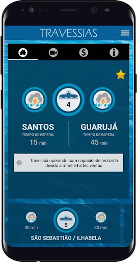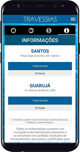 O APLICATIVO TRAVESSIAS foi desenvolvido pela Departamento Hidroviário., com o objetivo de fornecer aos USUÁRIOS informações operacionais das TRAVESSIAS LITORÂNEAS, tais como: