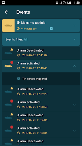 • alarm trigger events;