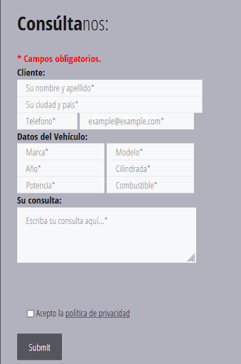 Si su vehículo no aparece en el listado de esta aplicación puede ponerse en contacto con nosotros y le atenderemos su petición.