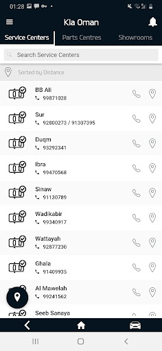 KIA Network: This will provide the information about the KIA branches along with the available in the contact information of SOS, In-charge, email Ids etc. This will help the customers to locate and contact KIA Service, Parts & Showrooms. On enabling the GPRS, the App will also help and navigate the customers to reach to their preferred branch.