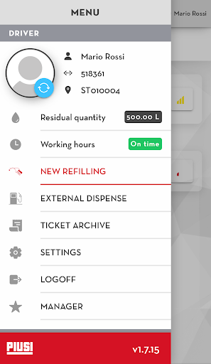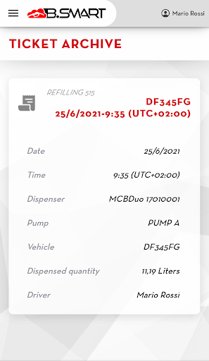 Once opened, just choose the dispenser, insert the registration number and the mileage, choose the preset option or fill the tank according to your need and start refueling. Once stopped, a receipt is displayed on the smart device (and in real time on the manager’s Web APP).