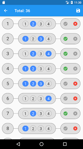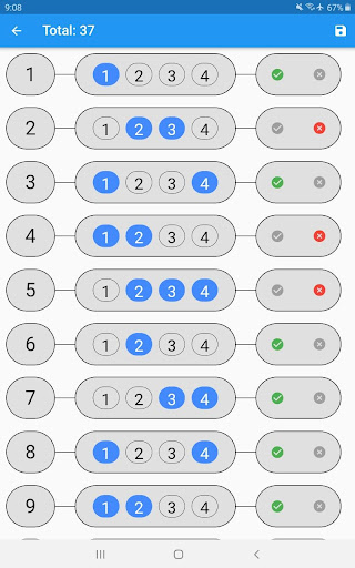 Answer to each question with “1”, “2”, “3” or “4”, or all at once. If you’re not sure of a question, answer and tap the “wrong” icon in the right section until you ask your instructor.