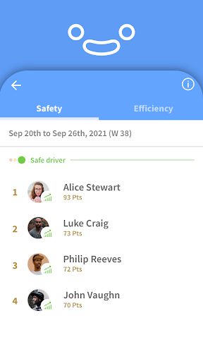 Scoring System: Get a 1-100 safety score of your drivers weekly changes