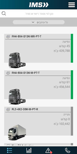 יישום IMS מאפשר גישה למידע היסטורי ומידע בזמן אמת על הרכבים שברשותך המנויים לשירות.