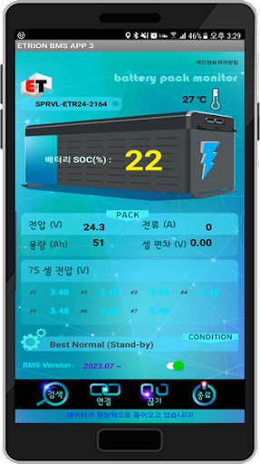 (주)이트라이언 에서 제작한 리튬-이온 배터리 팩의 BMS 모니터링 APP