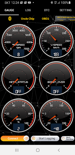 블루투스 통신을 사용하여 PROSS에서 제작한 METHAN KIT 제어하고 차량 상태 정보 취득하여 화면에 표시