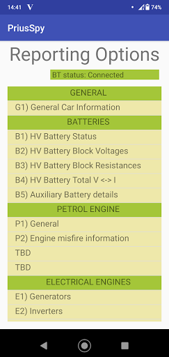The app can be used to show detailed information about the car like general car/engin information, Battery Status information, Battery Block Voltages, Engine operation,…..