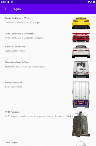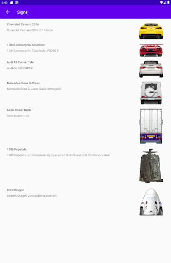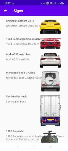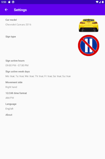 You can select from the several sign types and from some vehicle models to indicate the position on the road.