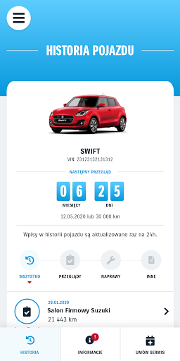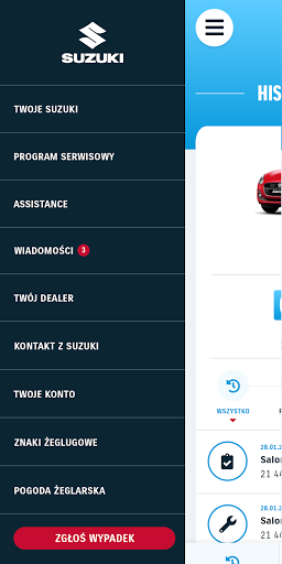 – wygodnie przejrzysz historię serwisowania swojego Suzuki,