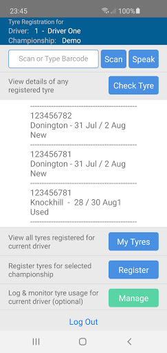 The RaceTyreControl app helps you manage the registration and use of your drivers tyres at every stage throughout your championship.