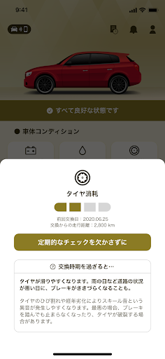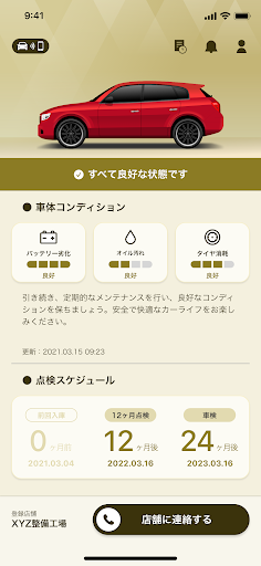 ■車両に取り付けた機器を通じて愛車のコンディションを把握、かかりつけの自動車整備工場から最適なタイミングで整備点検提案を通知してくれるサービスです。必要に応じた適切な整備点検を受ける事で、お客様の安心安全なカーライフをサポートします。