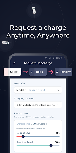 Hopcharge is an on-demand, doorstep electric vehicle charging system. Users can open a mobile application and in a few taps book charging services. A user can book the date, time, and location, and a Hopcharge e-Pod (energy pod) equipped with special purpose proprietary hardware and firmware will come to the requested location and charge the user’s EV.