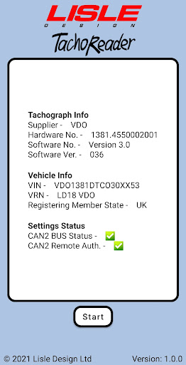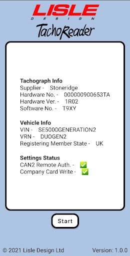 This app interrogates the connected tachograph to determine the compatibility of its settings with our remote download tools.