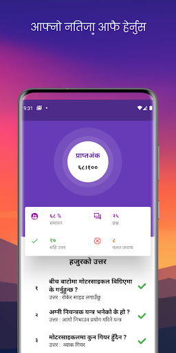 Nepali Driving Exam App helps you to prepare for Driving License exam in Nepal. You can practice them in a more realistic and digital way. You need not buy a separate book for practicing the questions.