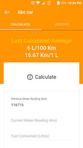 When you fill-up fuel, just enter the amount you purchased and your current meter reading and Fuelage will calculate the average.