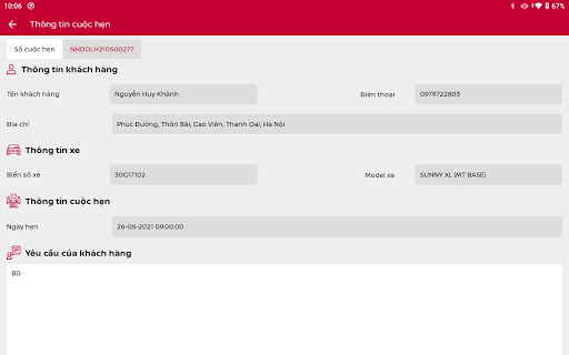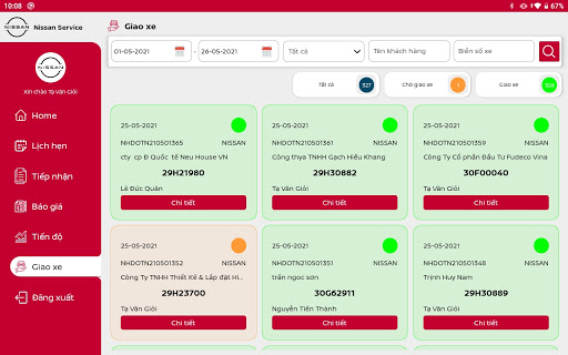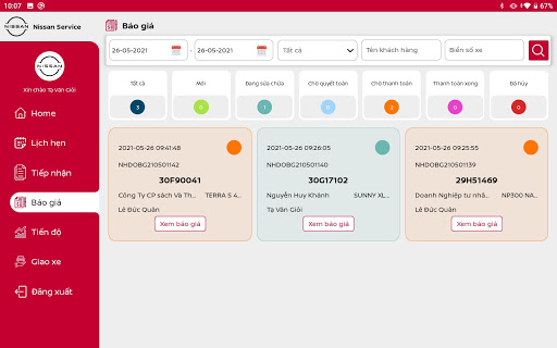 Tiếp nhận xe, báo giá, các công việc dịch vụ sửa chữa cho khách hàng sử dụng dịch vụ tại Nissan Việt Nam