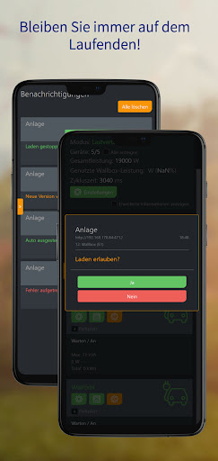 Push-Nachrichten informieren Sie über den aktuellen Status der Wallbox bzw.