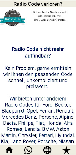 Lost your radio code? No problem, by using the serial number you will quickly and easily receive the appropriate radio code for a payment with a 100% money-back guarantee.