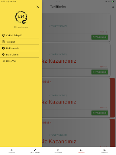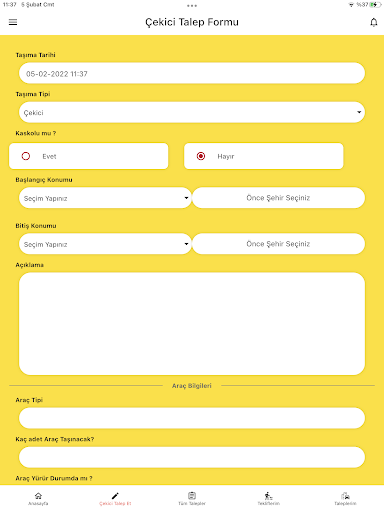 Uygun çekici hizmetine ulaşmak ya da araç taşıtmak isteyen müşterilerle bir araya gelmek hiç bu kadar kolay olmamıştı! Talep Havuzu Teklif Sistemi Acil Yol Yardım Sistemi Müşteri-tedarikçi ortak platform İşlem Akışı Ekranları