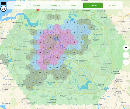 Приложение Smile Taxi Ratio позволяет видеть реальную картину о спросе такси на интерактивной карте в конкретной точке и в городе в целом. Получать статистику и аналитику.
