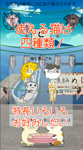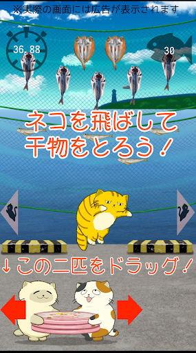 とばす猫を落とさないように気を付けながら、制限時間内に干物をぜんぶゲットしよう!