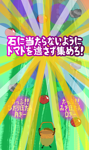石に当たらないようにトマトを逃さず集めることでハイスコアを目指しましょう!