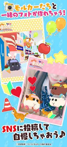 「モルチェキっ!」はゲームで集めたモルカーたちを自由に配置してオリジナルの写真を作れる機能だよ!