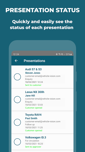The Vehicle Vision Sales app is used to produce dynamic personalised sales presentations of used and new vehicles throughout the sales cycle. Record personalised presentation videos to: